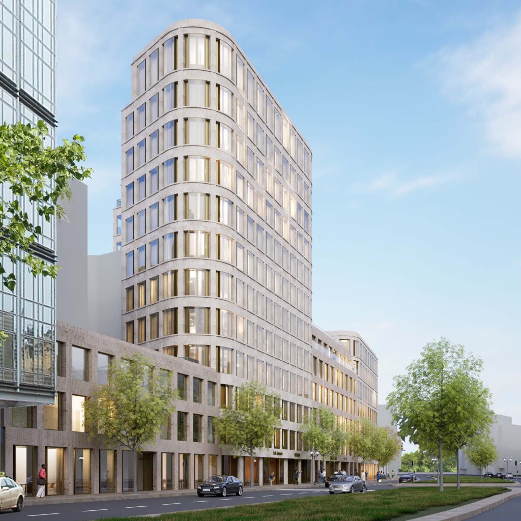 Mitten im pulsierenden Herzen der Berliner City-West entsteht das Panorama am Adenauerplatz – ein Projekt, das Arbeiten und modernes Stadtleben neu definiert. Das ehemalige Panorama-Hotel aus den 70er-Jahren wird architektonisch hochwertig umgestaltet und ergänzt durch ein eindrucksvolles Neubau-Ensemble. Geplant vom renommierten Architekturbüro Max Dudler, verbindet das Projekt moderne Architektur, exklusive Büroflächen sowie attraktive Gewerbeeinheiten. Willkommen am Adenauerplatz, wo innovative Architektur und historischer Standort zu einer zukunftsweisenden Symbiose verschmelzen.